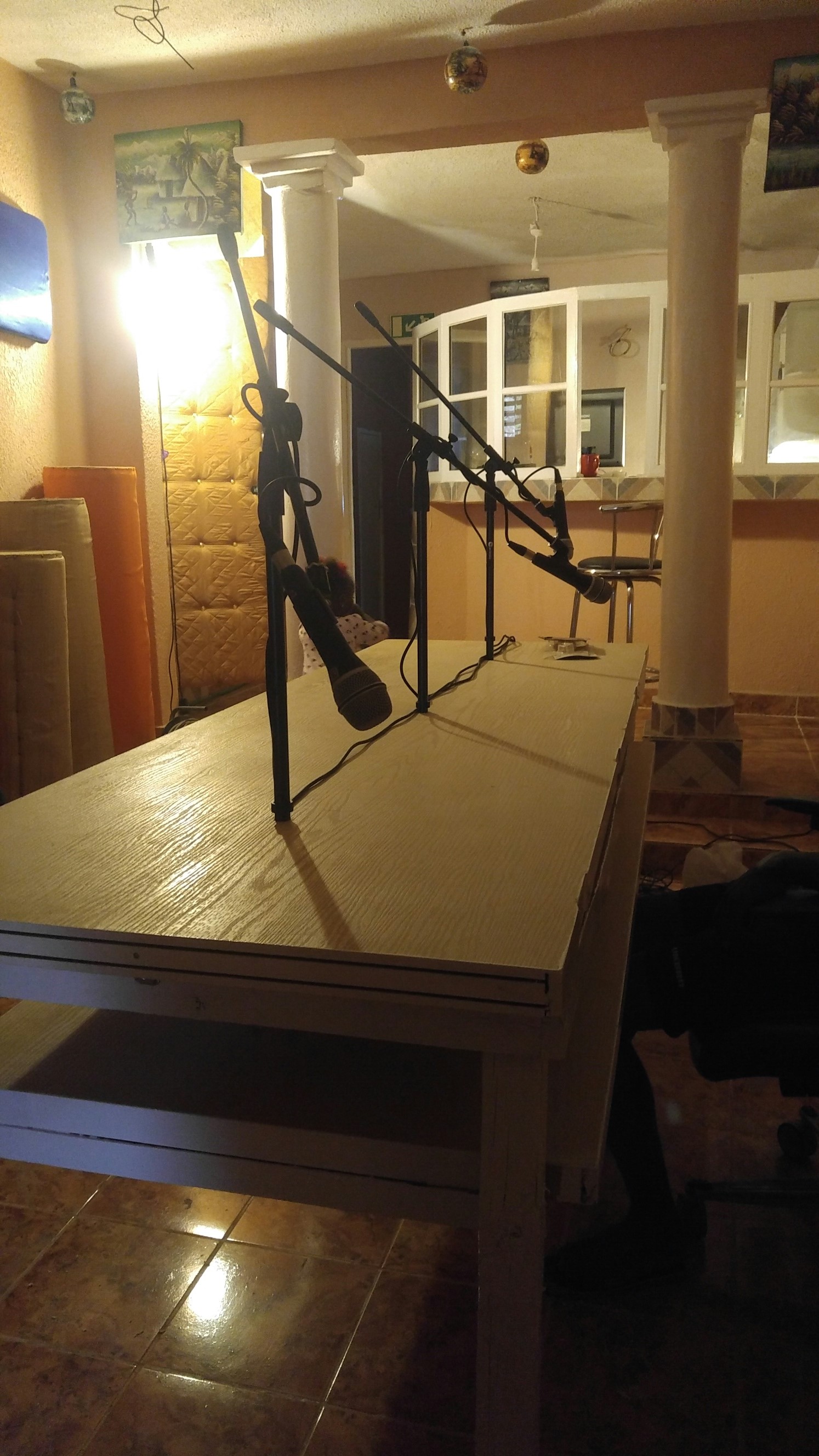 Das Studio mit Mikros für die Gäste
